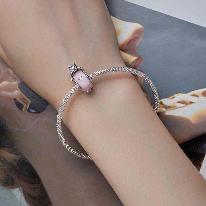 Jorrio Cute Pink Lucite Cat Sterling Silver Charm