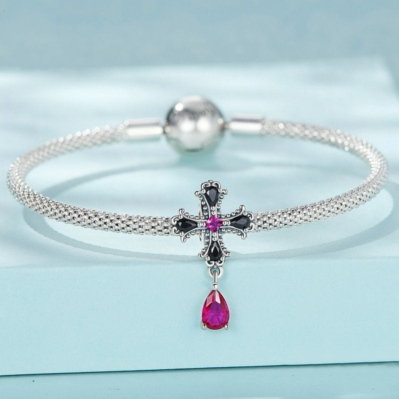 Jorrio Halloween Cross Pear Cut Sterling Silver Charm